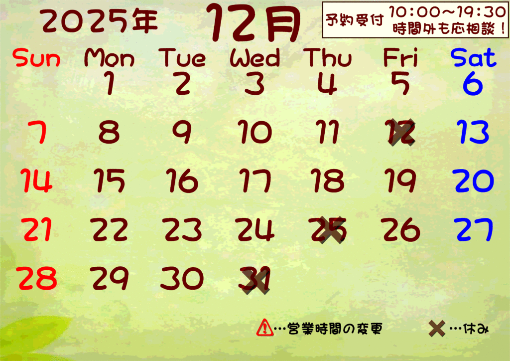 当日は施術状況により返信遅れますので、事前予約にご利用ください。