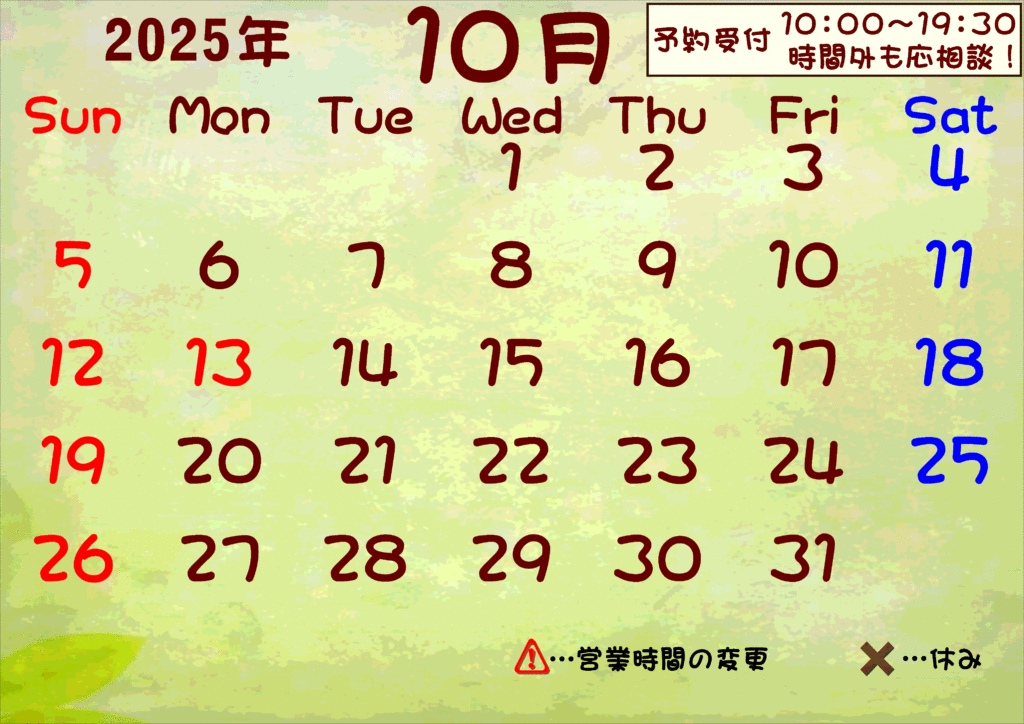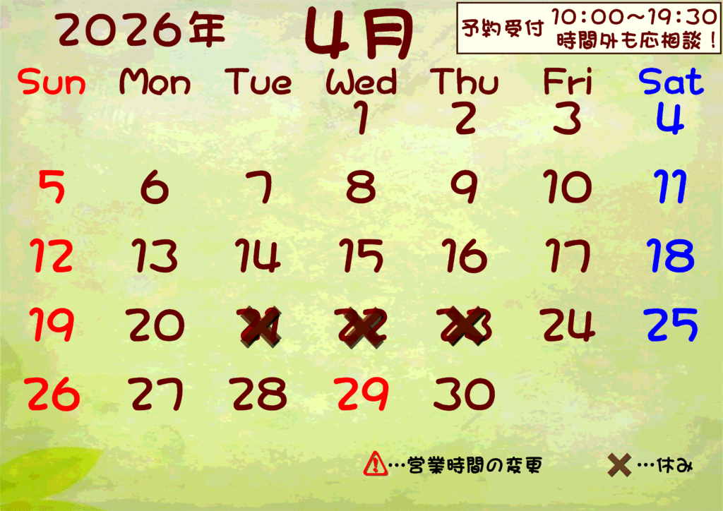 当日は施術状況により返信遅れますので、事前予約にご利用ください。